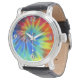 De zwarte lederen riem van mannen is voorzien van een afbeelding van een zwenkplaat van elektrische regenboogdaskleurstof. Optioneel klokgezicht. Zie overeenkomende druppeloorringen en ronde charm. Zie het volledige collectie Dit & dat van het Horloge in de sectie van ACCESSOIRES.