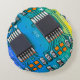 Elektronische printplaat dicht bij de achtergrond, rond kussen