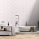 Een zeer aangenaam uitziende baby meisje kamer behang in een delicate olifant roze en witte lijn kunst.