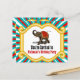 Gepersonaliseerd circusthema, voor alle gelegenheden. Dit elefantdierontwerp is een geweldige aanraking voor de verzamelaar of het liefhebber van pachydermen. Een Indische olifant wordt geadorbeerd met een rode doek op zijn rug, voor het circus of voor andere gelegenheden, met rode tassels en een decoratief nekstuk met een leuke turquoise blauwgroen en rode strepe achtergrond en cirkellicht rond de omtrek. Hij heeft zijn kofferbak voor geluk. Ontwerpauteursrecht © CustomInvitesOnline.