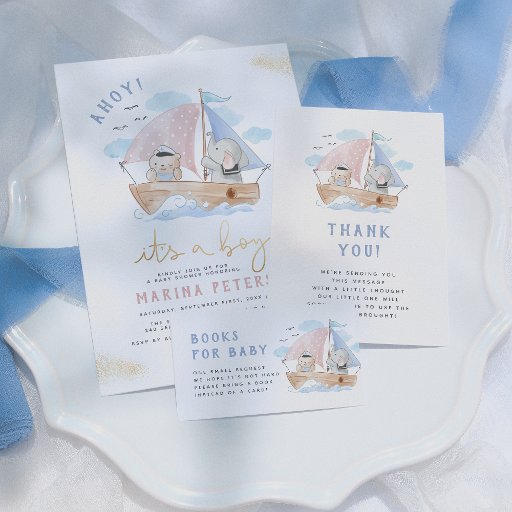 Elephant Sailboat Baby shower Bedankt