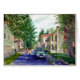 Straatscène van een huis met bloementuin in Elsah Illinois, illustratie van een origineel impressionistisch oliesschilderij door fijne kunstschilder Daniel Fishback.