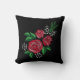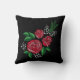 Het prachtige borduurwerk gooit een kussen met kleine witte bloemen en rode rozen met groene bladeren op een zwarte achtergrond en maakt een geweldige decoratie. Perfect cadeau voor verjaardag, bruiloft of huisopwarming. Een groot cadeau voor degenen die van borduurwerk en natuur houden.