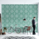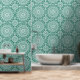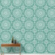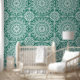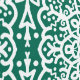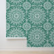 Elegante witte kant abstracte hand getekende bohemian symmetrische mandala patroon op juweel toon donkersmaragdgroene achtergrond.