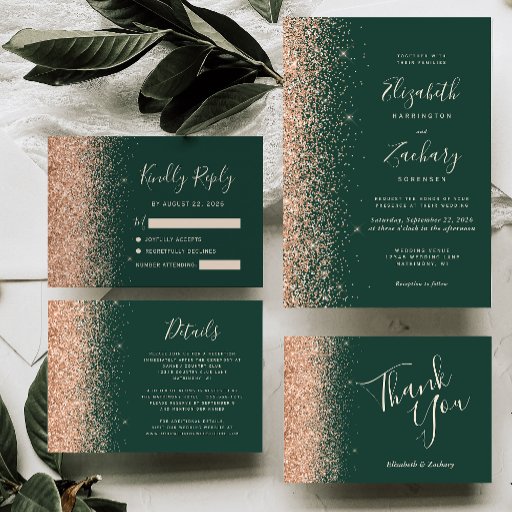 Modern Peach Glitter Emerald Green Wedding SuiteOntworpen door Akhates Designs