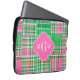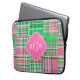Emerald Hot Pink Preppy Patchwork Madras Monogram Laptop Sleeve