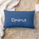 Emma pillow, gepersonaliseerde monogram stijlnaam in wit op Classic Blue, voor paars, groen, rood, roze, zwart, oranje, geel, bruin, grijs of een andere kleur, klik op het tabblad 'Aanpassen'. De naam Emma in modern manuscript op een kwaliteitskatoen of polyester werpt kussen. Gemaakt in de Verenigde Staten, machinaal wasbaar, bijvoegen.