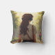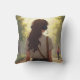 Emotioneel meisje dat naar muziek luistert, gooi k kussen