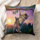 Een schattig 5D holografisch kunstwerk van een kleurrijk kitten dat aan een boomtak hangt, badend in het warme licht van de zonsondergang, met een magische, gloeiende aura.