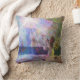 Afbeelding van een engel die op het strand staat, naar boven kijkend, in de uitstraling van de zon op een sierkussen.