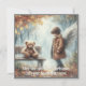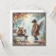 Een engelenjongen met een platte Kaart van een teddybeer.