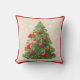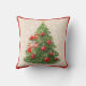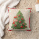 Sierkussen met de kleine engeltjes die de kerstboom versieren door een ornament te schilderen met een achtergrond van bleke sneeuwvlokken.