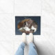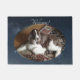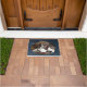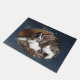 Dit is een doormat met een originele foto van een regaal, lever en wit Engelstalig Springer-spaniel met een stervormblauwe achtergrond.