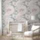 Enorme grootte romige rozen & groene bloemblaadje behang