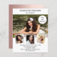 Creëer je eigen unieke fotocollage. Gebruik vier, vier van je favoriete foto's. Pas een naam en partijdetails aan en voeg deze toe. Witte achtergrond aan de voorkant, roos goud aan de achterkant.
