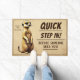 Lass deine Gäste mit einem Lächeln und einem humorvollen Augenzwinkern in dein Zuhause eintreten! Diese Fußmatte zeigt ein niedliches Erdmännchen, das aufmerksam in die Ferne schaut, als würde es neugierig nach unerwünschten Besuchern Ausschau halten. Der Text „Quick, Step in! Before someone sees you“ fügt eine witzige Wendung hinzu, als würde das Erdmännchen seine Gäste auf lustige Weise in den Schutz des „Baues“ einladen, bevor jemand anderes ankommt. Eine weitere charmante Nachricht „Built with LOVE for Family & Friends“ rundet das Design ab und vermittelt die liebevolle Atmosphäre deines Zuhauses. Die sanften Sandfarben im Hintergrund und die natürlichen Beige- und Brauntöne des Erdmännchens sorgen für eine warme und einladende Optik, während die dunkelbraune Schrift für Klarheit und Eleganz sorgt. Perfekt für alle, die Humor und Wärme in ihrem Zuhause vereinen wollen. Diese Fußmatte ist auch ein tolles Geschenk für Freunde oder Familie – ideal für jede Einweihung oder als originelle Deko für das Heim.