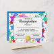 Kleurrijke sterren die aanpasbaar zijn voor de gedrukte Erkenning Certificate Award, aanpasbaar voor elke cursus of programma. Voeg je eigen titel en details toe aan dit bedrijfs- of schoolgunningscertificaat Letter size 8.5"x11". Aangepast ontwerp met uw middelbare school, kinderen, middelbare school, carrièretraining, cursus of seminar. Show uw studenten, vrijwilligers en personeel erkenning voor een geweldige houding of uitvoering met dit aanpasbare, gepersonaliseerde certificaat. Voeg online uw eigen tekst toe, en ordecertificaten die voor uw programma worden gemaakt. Verlaat de spatie van het handtekeningsgebied om een handtekening later toe te voegen, of typ jouw naam en titel, en voeg nog uw handtekening hierboven toe. De naam van Honoree kan in worden getypt of de lege lijn kan worden verlaten om hand-geschreven of gedrukte namen later toe te voegen.