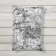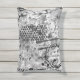 Dit werpkussen heeft een eclectisch abstract dat cirkels van zebrastrepen bevat. De kleuren variëren van grijs (of grijs) tot houtskool tot zwart.