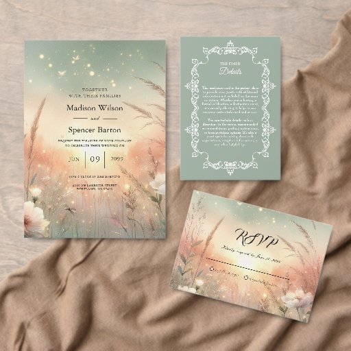 Ethereal Pastel Wildflower Field Wedding RSVP Kaartje
