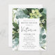 Deze elegante en moderne bruiddoucheuitnodiging is voorzien van een prachtig waterverf eucalyptusdesign in tinten groen, grijs en wit dat perfect de schoonheid van de natuur weergeeft. Of u nu een intieme bijeenkomst met familie en vrienden organiseert of een grotere viering met al uw dierbaren, dit ontwerp is perfect voor elke bruid die nog moet kijken om een beetje verfijning en elegantie aan haar vrijgezellenfeest toe te voegen.