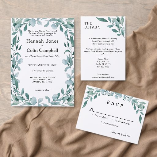 Eucalyptus Greenery Frame Green Blue White BlackOntworpen door Leah Bigley