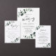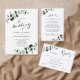 Eucalyptus Greenery Modern Calligraphy QR Code RSVP White Sage Wedding Invitation... Onze botanische huwelijksuitnodiging "alles in één" is voorzien van elegante eucalyptustakken met sage en smaragdkleurige bladeren op een scherpe witte achtergrond. De grafische moderne kalligrafie toont de tekst voor "het Wedden van", "en", evenals "ontvangst te volgen"vergezeld van elegante serif typografie voor de tekst om worden gepersonaliseerd. Het lichte beeld terug van de uitnodiging toont uw trouwwebsite QR code evenals URL van de website zelf toestaand uw invitees om gemakkelijk online RSVP en uitzicht alle details die typisch in een trouwpakket worden verzonden. De grafische code van voorbeeld QR en al voorbeeldtekst (naast de calligrafische elementen) kunnen gemakkelijk met uw eigen informatie over het verpersoonlijkingshulpmiddel worden herzien. Volg stap voor stap de sjabloon en controleer alles voordat u uw uitnodigingen koopt. Deze moderne stijluitnodiging is zowel tijdbesparend als elegant, speciaal gemaakt voor drukke bruiden-om-te-zijn.