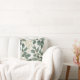 Dit ontwerp is voorzien van eucalyptusbladeren en takken op een witte achtergrond. Het ontwerp heeft een platte, grafische stijl en een zacht groen en goudkleurig kleurenschema. Het patroon bestaat uit bladeren en takken die in een andere richting zijn gerangschikt.