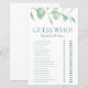 Deze eenvoudige, minimalistische, moderne eucalyptus Raad eens wie? vrijgezellenfeest spelplaat is perfect voor elke douche. Dit leuke en gemakkelijke spel is zeker om veel gelach naar elk vrijgezellenfeest te brengen! Het zal zeker het ijs breken en iedereen laten praten en lachen. Geef gewoon een vel aan elke gast (vergeet de pennen niet) en laat het plezier beginnen! Je zult verbaasd zijn over hoeveel mensen op de hoogte zijn van de antwoorden. Om dit spel van het vrijgezellenfeest te maken uw eigen uitgezocht eenvoudig aanpas deze sjabloon en type in de naam van de bruid en de groomnaam.