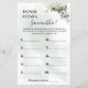 Waar was ze? Engels en Spaans versiespel inbegrepen (voor en achter). Voeg Bride toe om Naam in de sjabloon voor Engelse en Spaanse versie te zijn. Voor meer aanpassing (de veranderingsformulering, voegt of schrapt aantal foto's, doopvontkleur, doopvontstijl) toe, klikt op personalize, scrolt neer en klikt op verbinding "klik om verder aan te passen". HOE TE OM TE SPELEN: De foto's van de vertoning van de Bride om op verschillende plaatsen te zijn, en aantallen hen. De gasten schrijven hun gok van elke foto neer en de persoon met de meest correcte antwoorden wint!