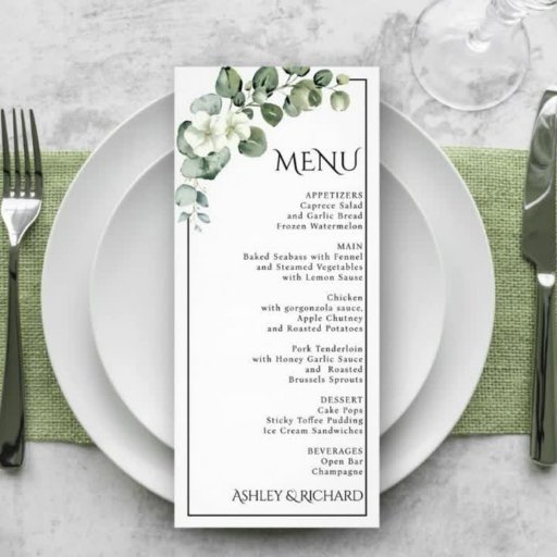 Eucalyptustak met witte bloemen bruiloft plaatskaartje