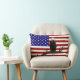 Een Bald Eagle scant de hemel van zijn baard op een boomtak, bovenop een vlag van de Verenigde Staten.