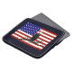 Een Bald Eagle scant de hemel van zijn baard op een boomtak, bovenop een vlag van de Verenigde Staten.