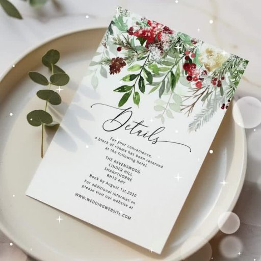 Evergreen elegante winter bruiloft details informatiekaartje