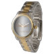 Goud en zilverkleurd vrouwenmetaal eWatch met "face"-design: Sound Waves en "Love the Sound of Your Own Voice".