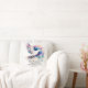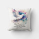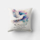 Gooi kussen met inspirerend citaat Schrift beeldt een mooie witte duif vliegen door de lucht, zijn vleugels versierd met blauw en lavendel spatten van verf. Het bevat een bemoedigend Bijbelvers Exodus 33:14: "Mijn tegenwoordigheid zal met u meegaan, en Ik zal u rust geven."