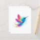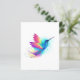 Heldere, iriserende, exotische vliegende kolibrie op witte achtergrond, overgeschilderd met meerkleurige, waterverf verf. Rainboogkolibrie.