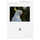 Een prachtig uitzicht van een exotisch witte kaketoe op deze prachtige witte briefkaarten.
