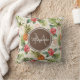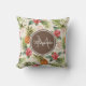 Een exotisch tropisch ananas bloemenpatroon vierkant gooi kussen dat kan worden gepersonaliseerd. Voeg jouw naam en monogram initiaal toe aan de donkerbruine afgeronde zeshoek badge om het uniek te maken voor jou. Dit maakt deel uit van het Tropical Pineapple Floral Emperador Monogram Collectie.