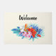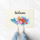 Welkom deurmat met een levendige en mooie tropische bloem. Orchiden, hibiscus en tropische bladeren. Roze, turquoise, rode en blauwe kleuren.