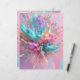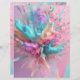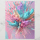 Een abstract ontwerp van exploderende verf met een faux 3d effect in een kleurenpalet van roze, turquoise, lila, koraal en ivoor.