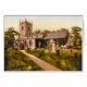 Notitiekaart met een vintage afbeelding van Eyam Church in Derbyshire, Engeland. Digitaal gereinigd, verbeterd en artistiek gerenderd om met waterverven op pen en inkt te lijken. De textuur van het perkament binnen, met een beschrijving op de achterkant, die luidt: "De parochiekerk in Eyam village, Derbyshire, Engeland werd voor het eerst opgetekend in 1250, toen de gebouwen dateerden uit de Saksische tijd. Architectonische kenmerken zijn Normandische zuilen, een middeleeuws schip en een 17e-eeuwse toren. Het kerkhof bevat een Angelsaksisch kruis uit de 8e eeuw." Verkrijgbaar in twee maten; witte envelop inbegrepen.