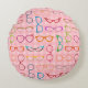 Deze kleurrijke, nerdy eyeglass, een nieuwigheids ontwerpronde kussen heeft een origineel patroon dat bestaat uit brillen in verschillende tinten en stijlen, allemaal op een achtergrond van retro roze gingham. De lijsten van de coole, girale glazen variëren van 50 en 60 seconden kattenoog/hoorn gekneusd en bruine vormen tot rond, vierkant en alles daartussen. Dit leuke, leuke patroon heeft een stijlvolle mode die perfect is voor elke hipster, nerd of fan van fel moderne stijl.