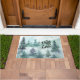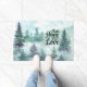 Prachtige deurmat toont een waterverf berglandschap met groenblijvende pijnbomen in de natuur. Het bevat een inspirerend uitspraak: "Faith Hope Love".