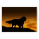 Golden rekwieg in silhouette tegen een gouden hemel die trouw wacht op een terugkeer naar huis of een verbinding bij het wenskaart van de Rainbow Bridge-hondenliefhebbers