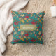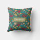 Dit donkerder werpen kussen eigenschappen een eenvoudig blad en bessenpatroon op een donkere turquoise blauwe achtergrond, met een lichtgroene tekstdoos voor uw eigen tekst. Dit zou er geweldig uitzien op je bank in de herfst!
