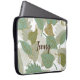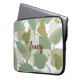 Stijlvolle, op maat gemaakte laptophoes met een afbeelding van een groen, bruin en wit bladpatroon. Pas de aangepaste tekst aan voor jezelf of als een prachtig cadeauidee.