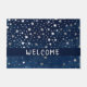 Mooie nachtelijke donkerblauwe hemelachtergrond met vallende zilveren sterren. Aanpassen met naam of ander speciaal bericht