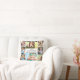 Een op maat gemaakt wit fotokussen om uw gezin te vieren met een 8-fotocollage, uw achternaam in elegante serif-typografie en ieders voornamen in eenvoudige moderne letters.