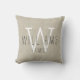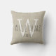 Familie! Gepersonaliseerde kussen van het huisdecor. Gepersonaliseerde beige, zwarte en witte monogrammed kussen met familienaam in de lay-out van de typografische doopvont op een PRINTED beige linen foto-effect achtergrond. Elke Clarke© geeft een groot cadeau voor nieuwe wieren of voor je familie. Geweldige trendy, elegante accessoire voor je slaapkamer, favoriete stoel, als leuke thuisdecor in je huiskamer of formele decoratieve aanvulling op je woonkamer. Pas je aan met je namen, monogram initiaal en trouwdatum.