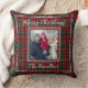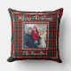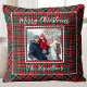 Familiefoto Rustic Christmas Plaid Sierkussen. Moderne rode en groene kerstvakantie Plaid met gepersonaliseerde familienaam.